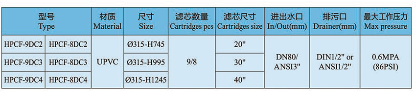 1.All the parts of this series filters are made of UPVC material.